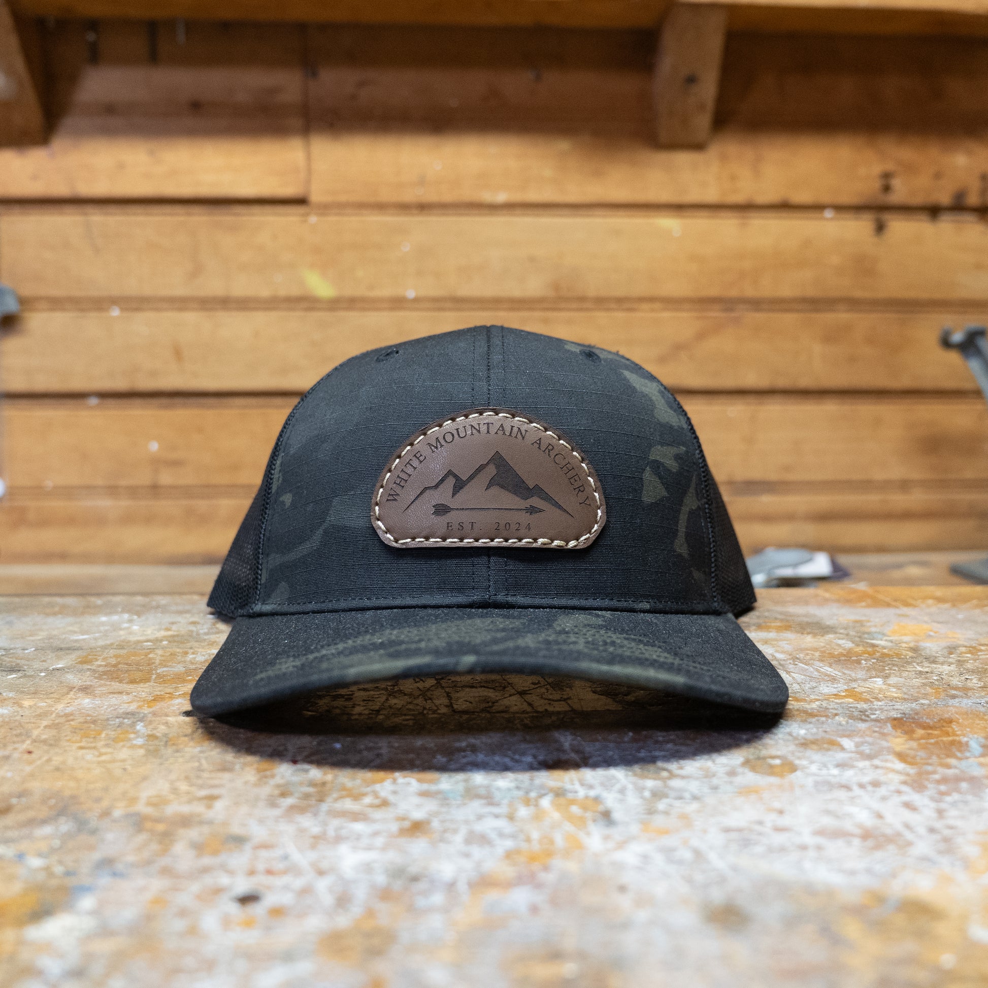 Black Richardson 862 Multicam Trucker Hat with Leather WMA Patch